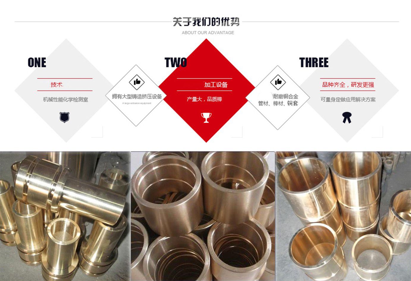 河間市銅套制品有限公司的生產設備精良,擁有40臺國內外先進設備;工藝水平先進,擁有砂型鑄造,金屬鑄造,離心鑄造等技術;是專業研究,開發自制的金屬制品企業。公司坐落于滄州市河間市束城鎮,是國務院確定的經濟開發區,地處北方重要陸海交通樞紐,交通十分便捷,且位鄰米各莊物流園,物流十分快捷,全國各地達到48小時內到貨?! ≈饕洜I:公司主要生產銅套,自潤滑銅套,儀器配件等,如銅軸套、銅滑板、銅瓦、銅蝸輪、銅滑塊、石墨軸承、石墨滑板、汽車配件,儀表,絲杠,法蘭,沖壓件,儀器零件,國標,非標,各種規格各種材質的金屬制品。 產品應用領域:工程機械 水利機械 礦山設備 液壓設備 鍛造設備 化工設備 紡織設備 冶金行業 機械 重工輕工等諸多領域。 主要合作單位:首都鋼鐵集團 ,河北鋼鐵集團 ,唐山鋼鐵集團 ,承德鋼鐵集團, 北京普析, 天津塞特?! 〕S貌馁|介紹:錫青銅:以錫為主要合金元素的銅基合金稱錫青銅,錫青銅在造船、化工、機械、儀表等工業中廣泛應用,主要用以制造軸承、軸套等耐磨零件和彈簧等彈性組件以及抗蝕、抗磁零件等,有高的強度、彈性、耐磨性和抗磁性,在熱態和冷態下壓力加工性良好,對電火花有較高的抗燃性,可焊接和纖焊,可加工性好,主要牌號有ZCuSn6Zn6Pb3,ZCuSn10Pb5,ZCuSn...